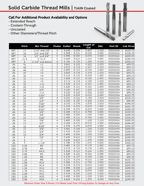 If your project requres a custom tool, we can engineer special lengths, diameters, forms, undercuts, skip tooth threadmills, and double end thread mills.