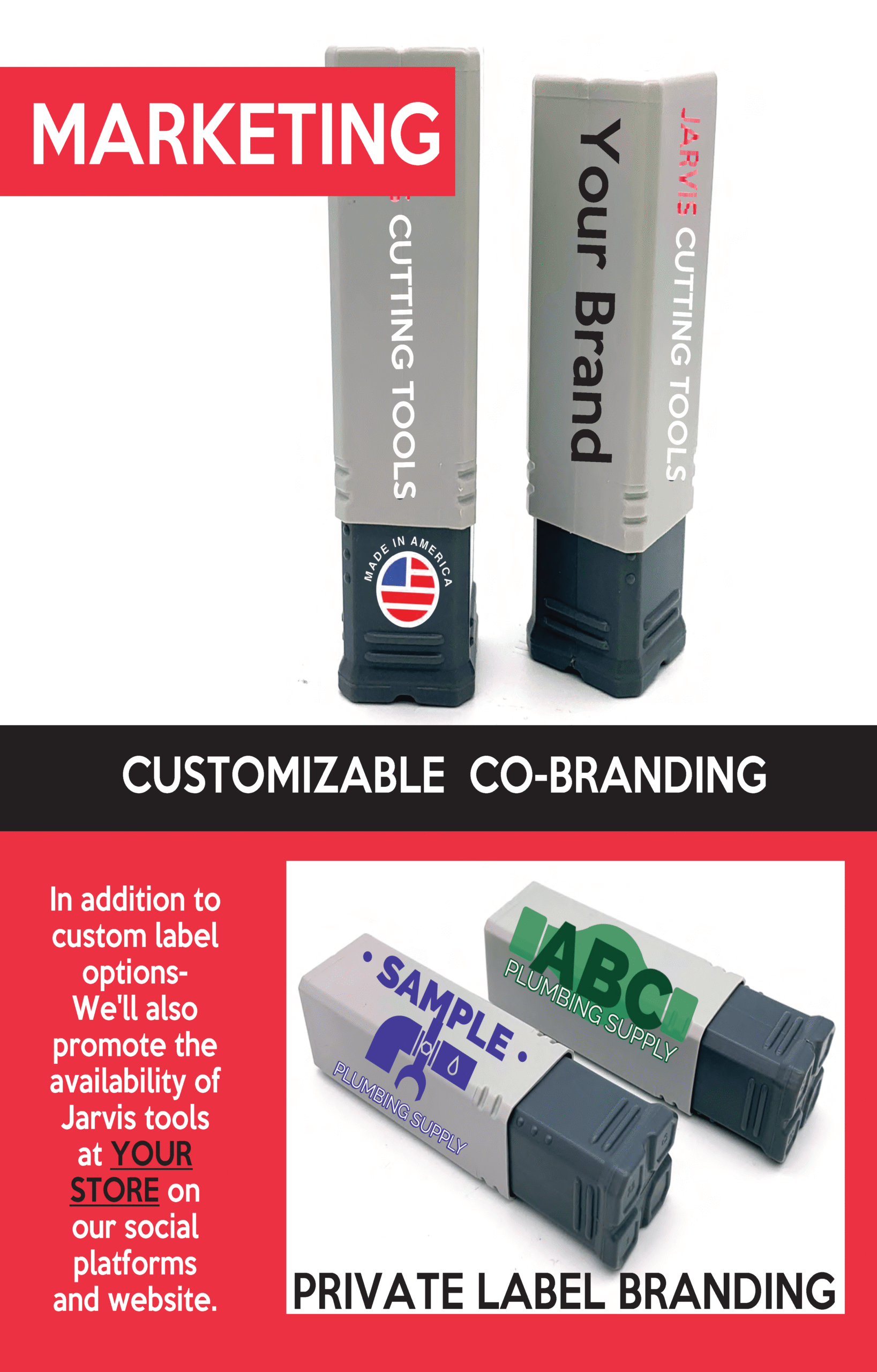 In Addition to custom label options, we’ll also promote the availability of Jarvis Tools at Your Store on our social platforms and website